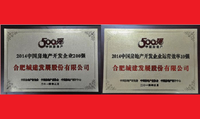 以诚为本赢在诚信9001喜获“2014中国房地产开发企业200强”、“中国房地产开发企业运营效率10强”