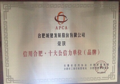 以诚为本赢在诚信9001荣获“信用合肥•十大公信力单位(品牌)”荣誉